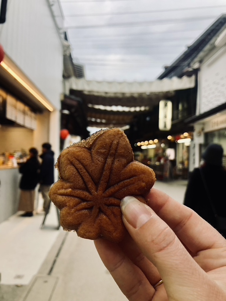 Sakura-flavored foods were everywhere during my trip, and Sakuramochi was no exception. A sweet rice cake filled with red bean paste and wrapped in a salted cherry blossom leaf, this treat was both delicate and refreshing. While I enjoyed the flavors, I have to admit it wasn’t my absolute favorite, but definitely worth trying for a traditional snack vibe.